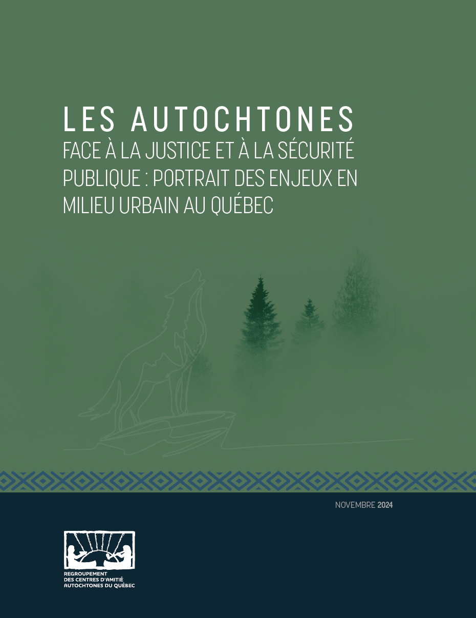 Regroupement des centres d’amitié autochtones du Québec, 2024. Les Autochtones face à la justice et à la sécurité publique : portrait des enjeux en milieu urbain au Québec. Wendake, RCAAQ.